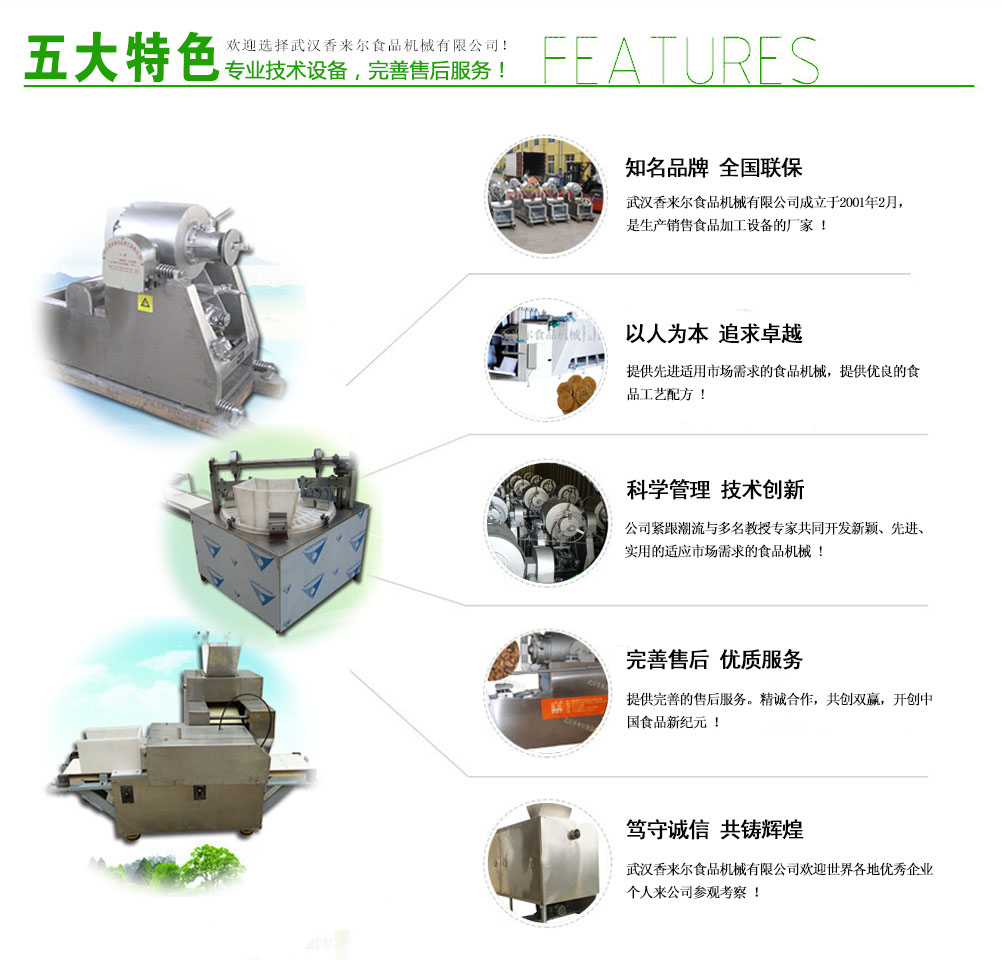 武漢香來(lái)爾食品機(jī)械有限公司成立于2001年2月,是生產(chǎn)銷售休閑食品加工設(shè)備的廠家。公司緊跟市場(chǎng)潮流與華工、華農(nóng)多名共同開發(fā)新穎、實(shí)用的適應(yīng)市場(chǎng)需求的食品機(jī)械,自有車、刨、鉆、銑、剪板、折彎等先l進(jìn)機(jī)床100多臺(tái) 套。7年誠(chéng)信通會(huì)員,產(chǎn)品出口拉美、非洲、東南亞、歐洲等很多國(guó)家和地區(qū),國(guó)內(nèi)很多食品企業(yè)都是我們的合作伙伴。目前公司專門設(shè)立一個(gè)的售后 服務(wù)班子,在公司逐步發(fā)展強(qiáng)大的過(guò)程中,一直堅(jiān)持售后服務(wù)的同步發(fā)展,精良的食品設(shè)...